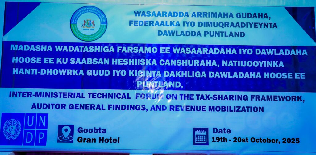 ‎Kulanka oo ay soo qaban-qaabisey Wasaaradda Arrimaha Gudaha, Federaalka iyo Dimuqraadiyeynta Puntland waxaa looga dooday sidii loo mideyn-lahaa, la iskuna waajafin-lahaa cansharadaha ay qaadaan Wasaaradaha iyo kuwa dawladda hoose, si kor loogu qaado dakhliga dawladda.