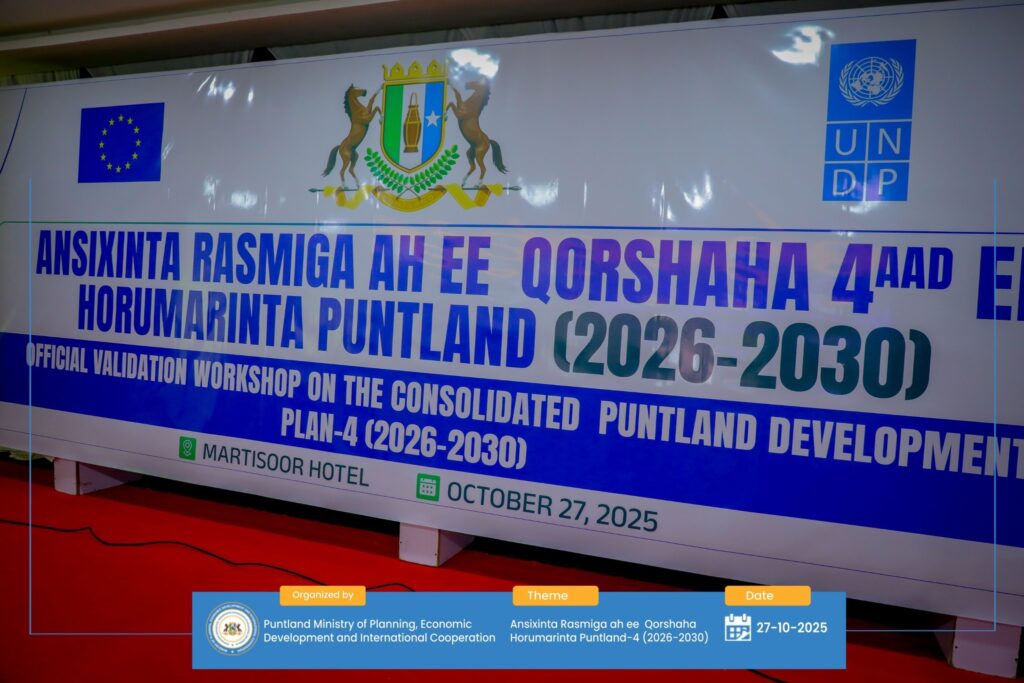 Wasiirka Wasaaradda Qorsheynta Horumarinta, Dhaqaalaha iyo Iskaashiga Caalamiga ee dawladda Puntland Hon. Da’ud Mohamed Bisinle ayaa daahfurey shirka ansixinta rasmiga ah qorshaha 4-aad ee horumarinta Puntland oo ay qabatay Wasaaradda Qorsheynta,Horumarinta Dhaqaalaha iyo Iskaashiga Caalamiga ah.