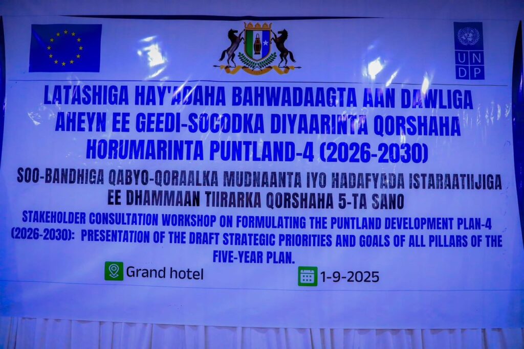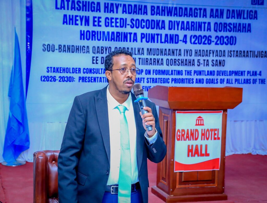 Agaasimaha Guud ee Wasaaradda Qorsheynta Horumarinta, Dhaqaalaha iyo Iskaashiga Caalamiga ee dawladda Puntland Eng. Abdulkadir Abdidahir Farah ayaa shir-gudoomiyay kulanka la-tashiga hay’adaha bahwadaagta aan dawliga aheyn ee geeddi-socodka diyaarinta qorshaha horumarinta Puntland (PDP⁴ 2026-2030).