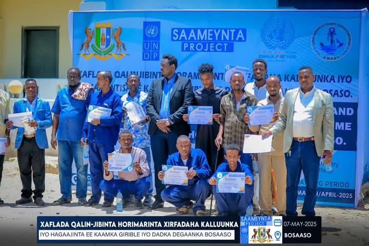 Wasiiru-dowlaha Wasaaradda Qorshaynta, Horumarinta Dhaqaalaha iyo Iskaashiga Caalamiga ah ee Dawladda Puntland Faarax Maxamuud Awcismaan ayaa magalada Bosaso kaga qayb galay tababarka xirfadda kaluumaysiga oo arday gaaraysa 100 dhalinyo ku barteen cilmiga badda iyo kaluumeysiga.