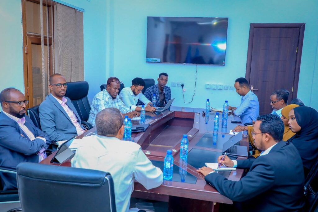 Wasiirka Wasaaradda Wasaaradda Qorsheynta Horumarinta, Dhaqaalaha iyo Iskaashiga Caalamiga ee dawladda Puntland Hon. Da’ud Mohamed Bisinle oo uu weheliyaan Wasiir kuxigeenka Wasaaradda Mohamed Hassan Ibrahim iyo Agaasimaha Guud Eng. Abdulkadir Abdidahir Farah ayaa shir-gudoomiyay kulan muhiima oo looga hadlayay dardargelinta hawlaha ee Wasaaradda Qorsheynta iyo u adeegista bulshada.